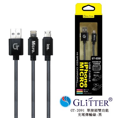 GT-2091 iPhone+MICRO USB單接頭雙功能傳輸線-黑