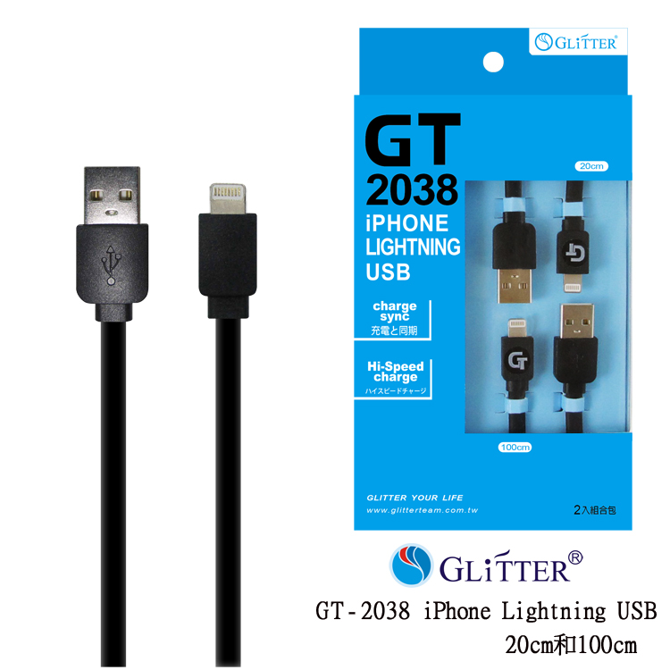 GT-2038 iPhone Lightning USB 電力傳輸線-2入組合包