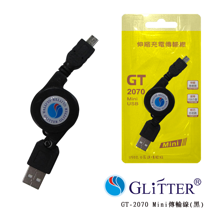 GT-2070 Mini伸縮式充電傳輸線-黑