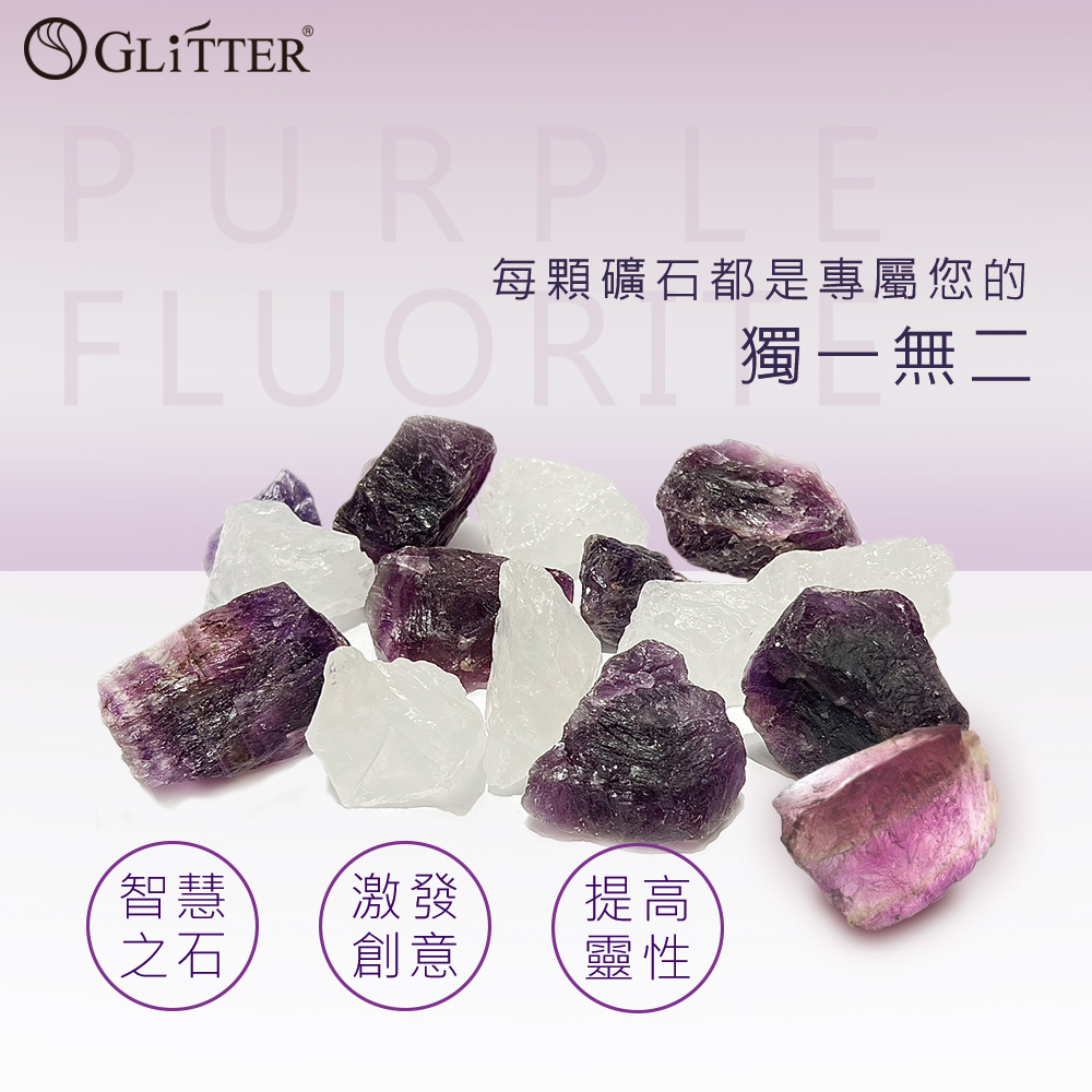 ●彩色螢石,可提高靈性並增加創意思考及預知與分析能力。它具有像玻璃的光澤,有着多種的顏色,故有「彩虹寶石」的稱號。螢石成分在紫外線照射下會發出螢光。由於螢石其外型看像水晶,硬度比水晶低,所以又有「軟水晶」之稱。近來螢石逐漸成為了寶石新貴,那閃閃發光的螢石有著彩色的紋理,細細觀賞品味讓人感受到它的能量。