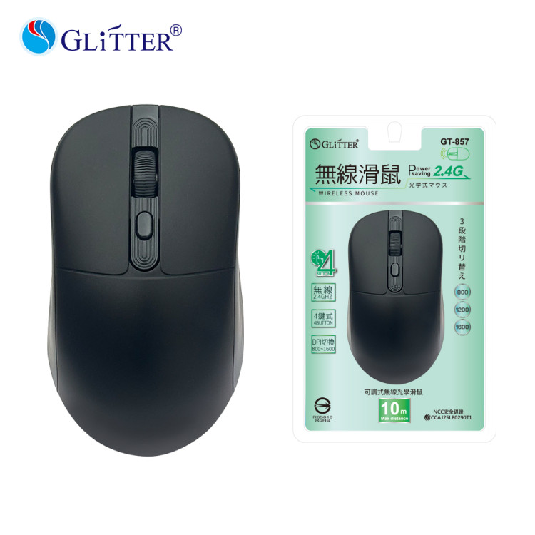 包裝內容:無線滑鼠 x 1(不含電池)、無線接收器 x 1、說明書x 1(包裝紙卡內面)