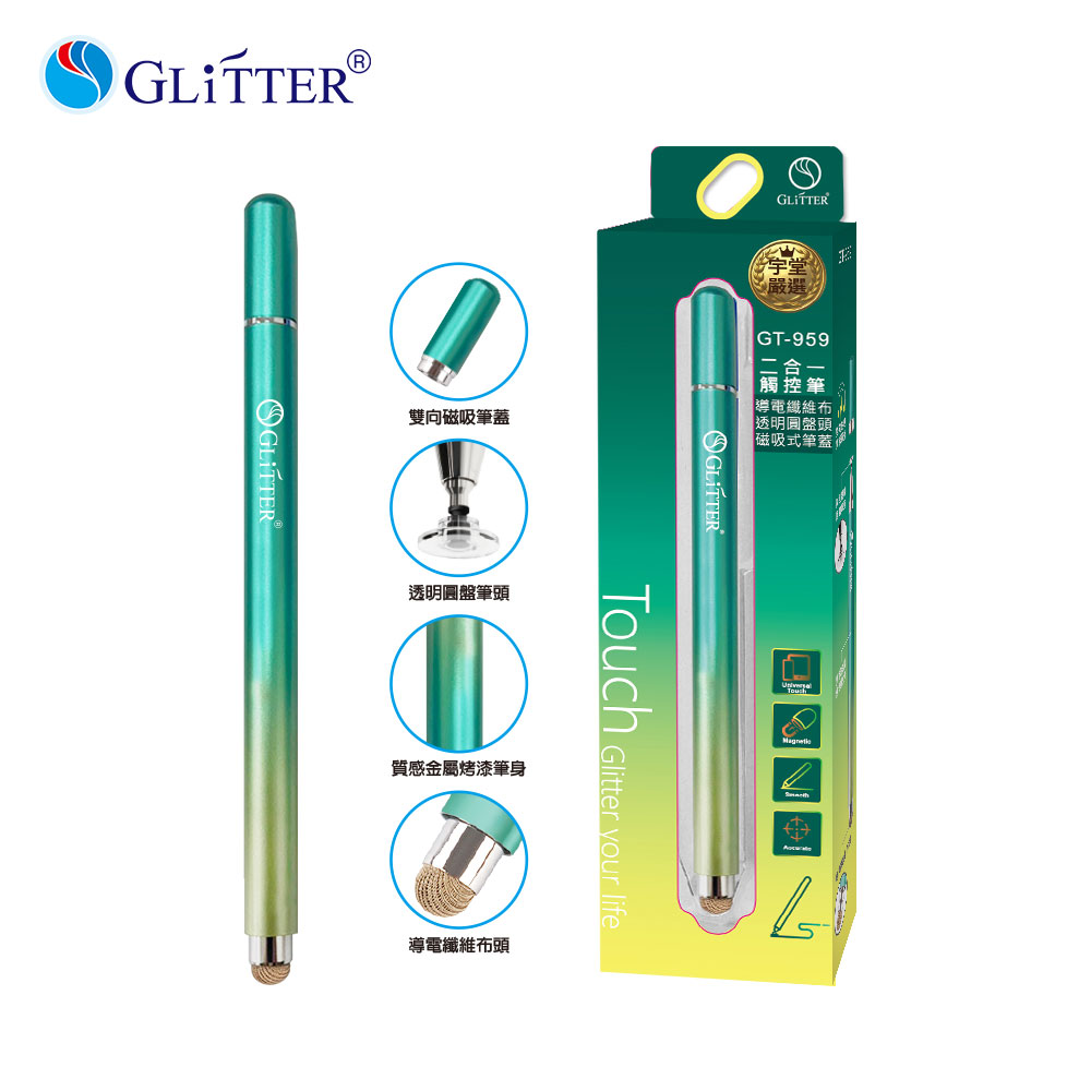 GT-959 二合一觸控筆 (導電纖維布/透明圓盤頭/磁吸式筆蓋)-綠黃