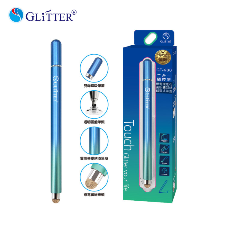 產品名稱:二合一觸控筆 (導電纖維布/透明圓盤頭/磁吸式筆蓋)