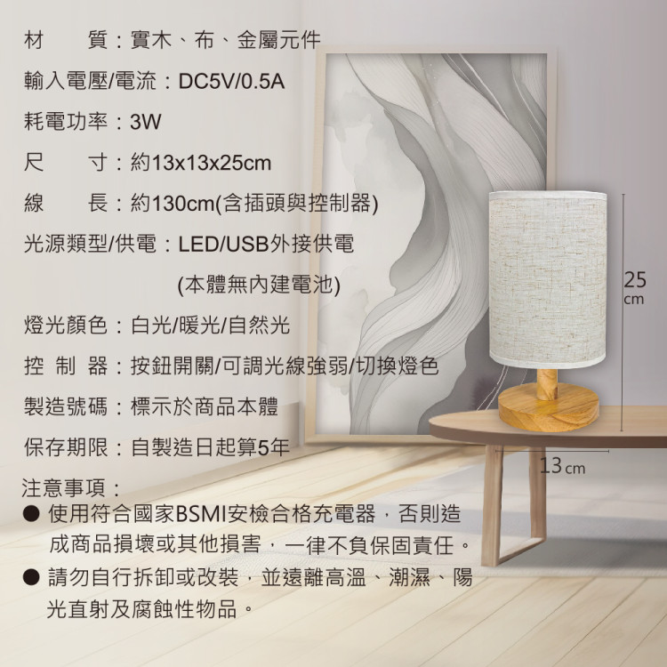 光源類型/供電:LED/USB外接供電(本體無內建電池)
